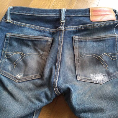 室内では作業着にしているジーンズの補修作業。ジーンズはもともと作業着として生まれたそうですが、いくら丈夫とはいえ酷使しているようです(ポケットからドライバーやらペンチがはみ出しています)。素人作業ですが...ちょっとは生まれ変わったかな?