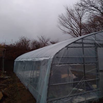 ビニールハウスはビニールをかけ、ほぼ完成しました。あとは薪ストーブ設置です。