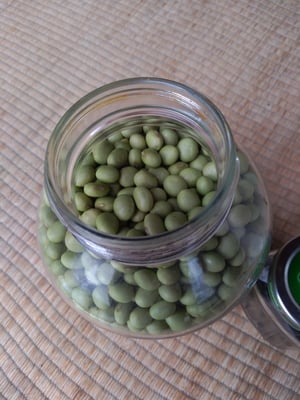 秋に堪能した枝豆・秘伝。自然乾燥させて青大豆にしました。