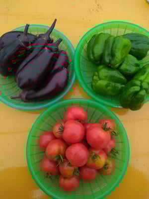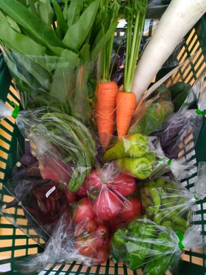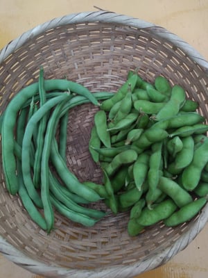それでも育ってくれる野菜もあります。野菜セットにインゲン、枝豆が入ってきました。ほかにはナス、ピーマン、トマトなどの夏野菜がたくさんとれてきました。野菜セットをご購入いただいた方から「ナス、柔らかかったです!」とお話ししていただきました。とってもうれしいお言葉です。ピーマンもおススメで、薄くスライスして水にサッとさらしてからサラダで食べるととってもおいしいですよ。直売所の販売日ではナス・トマト・ピーマンの夏野菜の豊作セットを数量限定で販売しています。夏野菜、いかがですか?