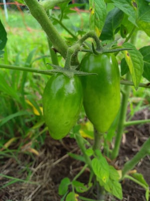 トマトの色付きがスピードを増してきました。トマトが赤くなるにはやはり気温が高い日が続くことが条件。クッキングトマトのサン・マルツァーノはもう少しですが、生食用の方は本気を出してきました。もちろん私たちも本気で野菜作り。ピーマンやナスももう少しです。