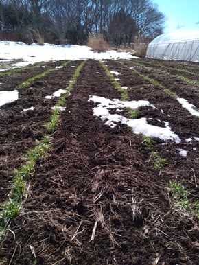 雪の下でじっと春を待っていました。少しずつ、季節が動いていますね。育苗ハウスの苗たちも少しずつ大きくなってきています。何やら種が品薄状態なんだとか、聞こえてきます。食料を守ること、種をつなぐことがやはり貴重なことだと思っています。