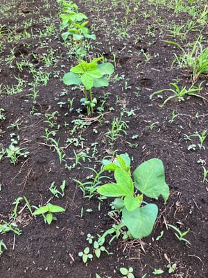 農園ではほかの野菜も大きくなってきています。枝豆、ニンジン、雑草も!