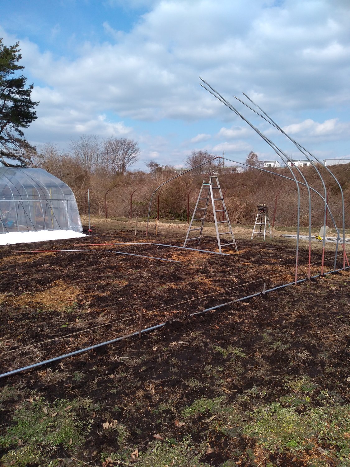 現在ビニールハウスが1棟ありますが、使わなくなったビニールハウスの部材をまた譲っていただき、2棟目を建てています。春からすぐ使えるようにしたいと考えています。