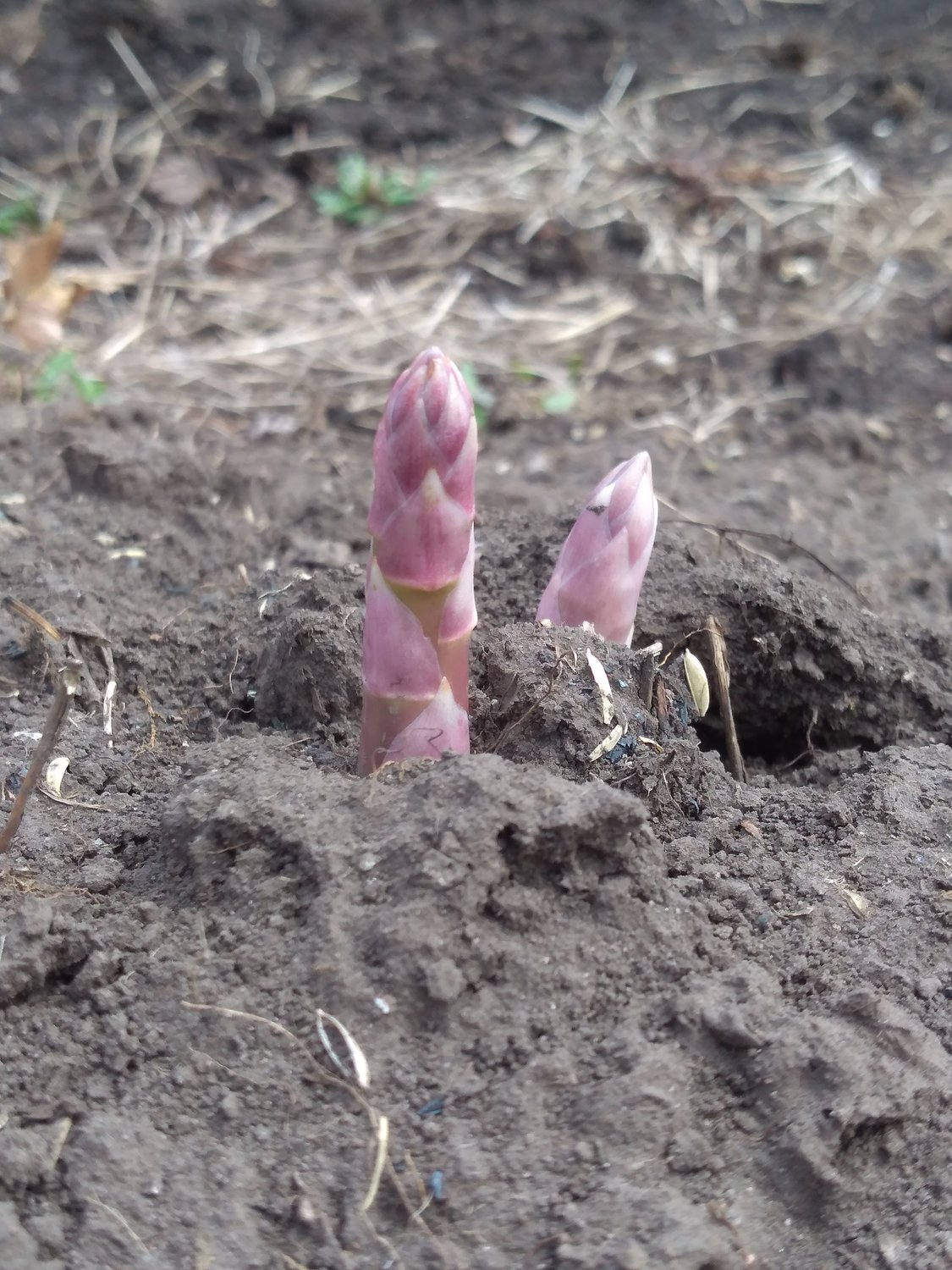 八戸の厳しい冬を乗り越えて、アスパラガスが顔を出しました。土の中も確実に暖かくなっているのですね。